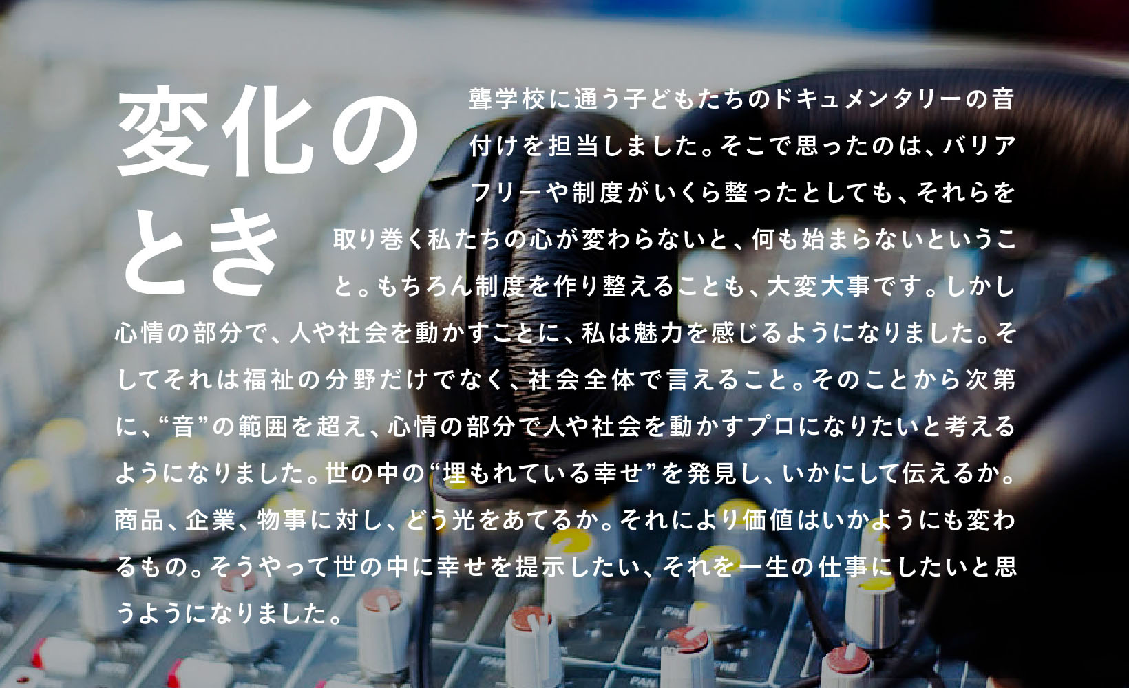 就職以外の道も考える中で、漠然と音関係の仕事に興味を持つように。